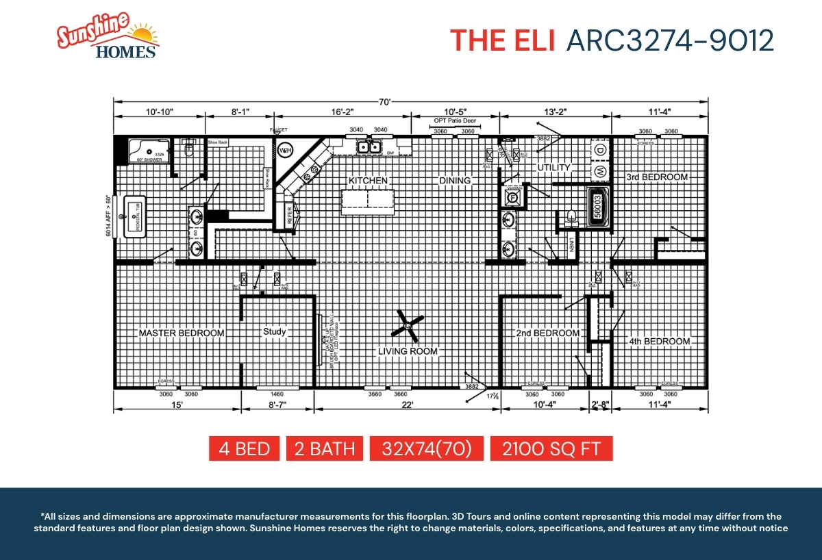 The Eli ARC3274-9012 built by Sunshine Homes offers 4 bedrooms, 2 bathrooms, and a generous 2,100 square feet of living space. This home brings together charm and functionality, featuring a layout designed for both everyday comfort and special gatherings. Whether you’re enjoying a quiet evening or hosting loved ones, The Eli ARC3274-9012provides a warm and welcoming atmosphere that truly feels like home.