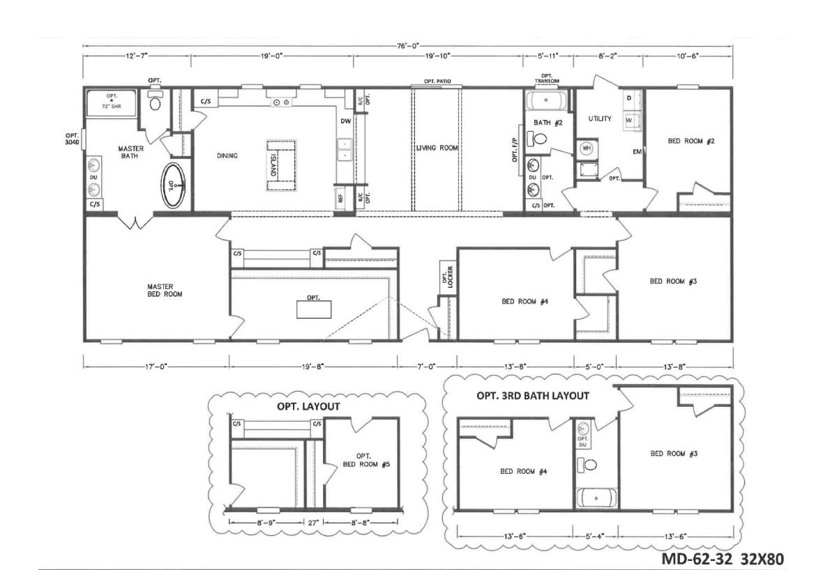 W x L: 32'0" x 76'0"