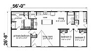 Beds: 3 Baths: 2.00 Sq Ft: 1493 W x L: 26′ 8″ x 56′ 0″
